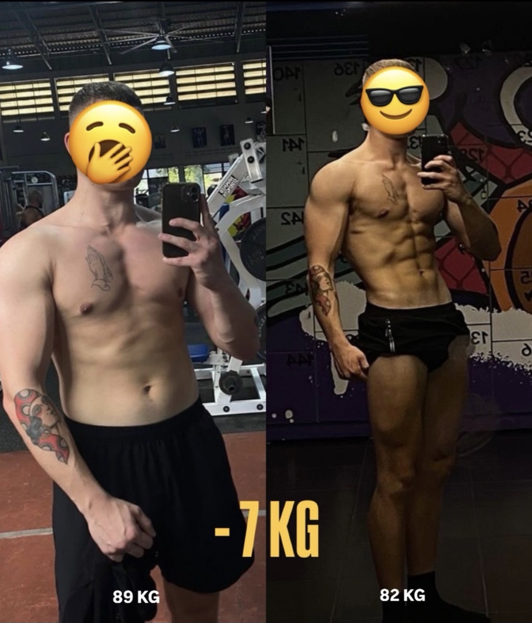 Down 7KG. Visible abs. A completely different body. And he's now one of the people who reached out for coaching.